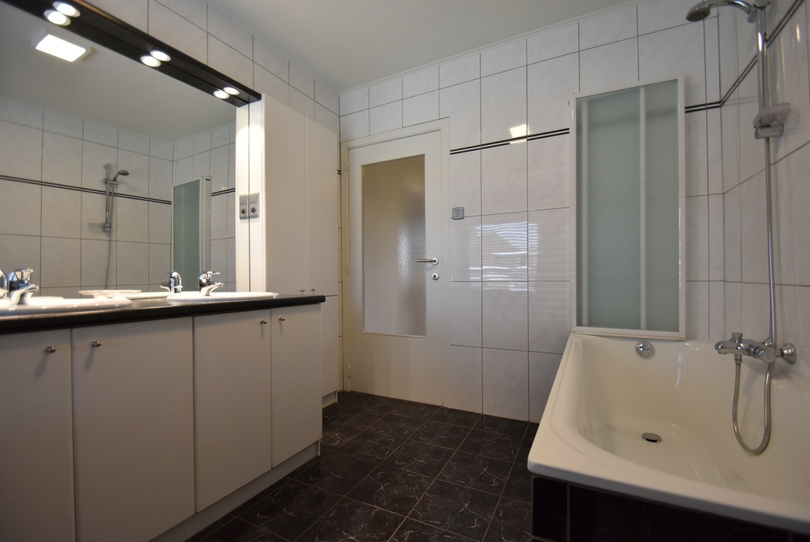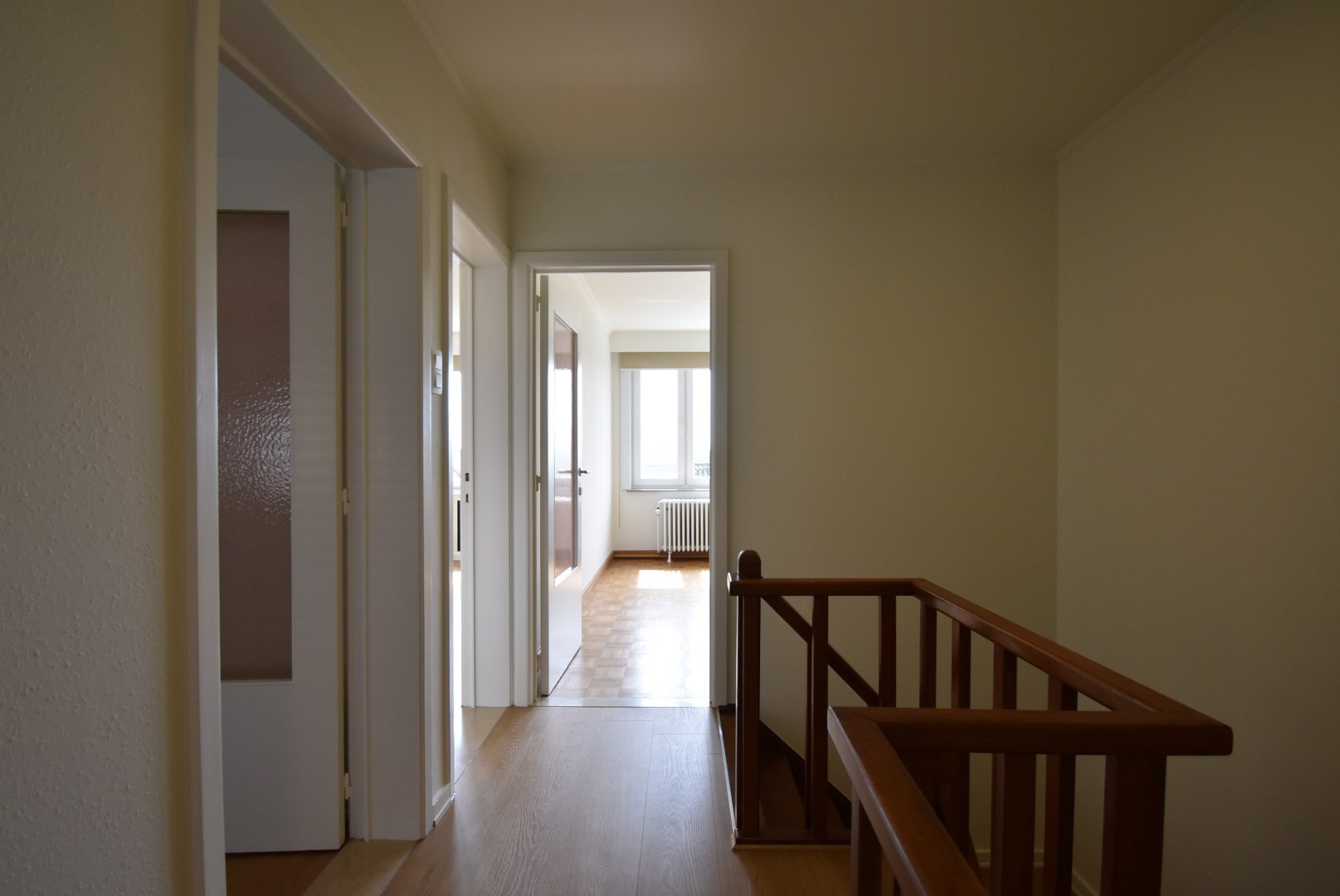 Verdieping 2: nachthal, eerste slaapkamer zeer ruime slaapkamer, tweede slaapkamer met inbouwkasten en screens, derde slaapkamer, eveneens met screens. Verzorgde badkamer met bad/douche, toilet en dubbele lavabo.