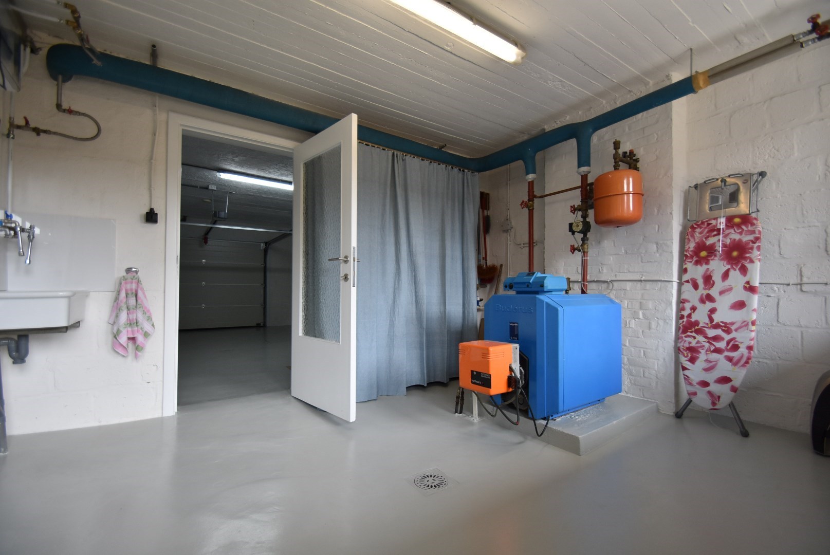 mooie uitnodigende inkomhal, inpandige garage, ruimte met CV, aansluitend op de tuin, bureelruimte met zicht op en toegang tot het terras en de tuin.