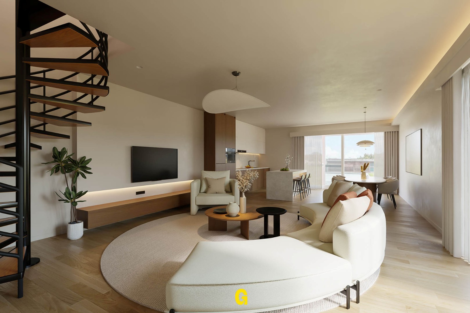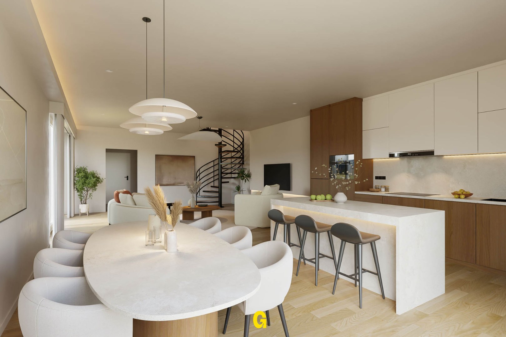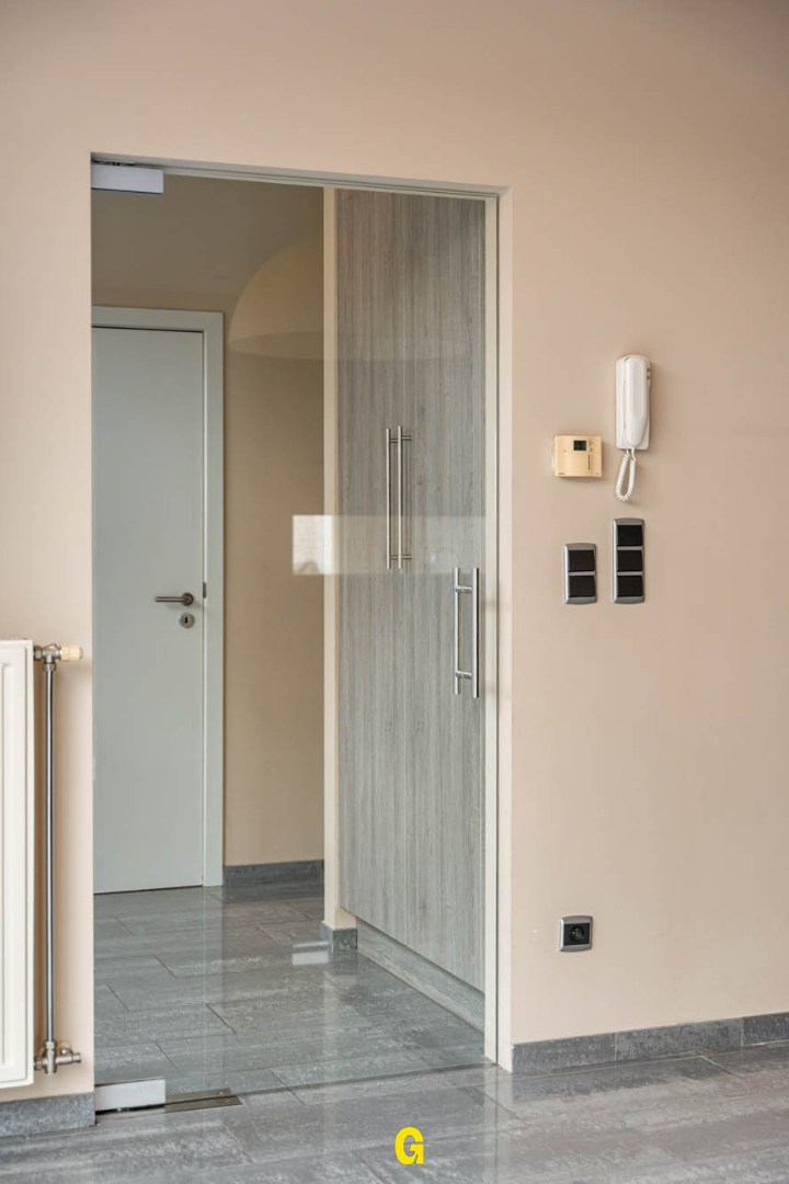 - Inkomhal met netjes afgewerkte vestiairekast, gastentoilet en glazen deur naar de leefruimtes