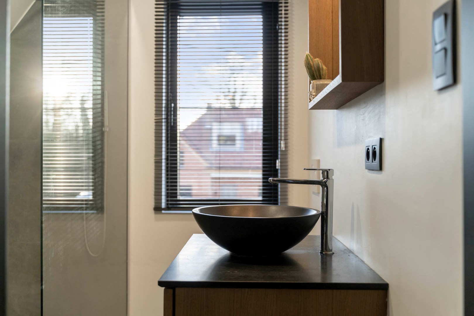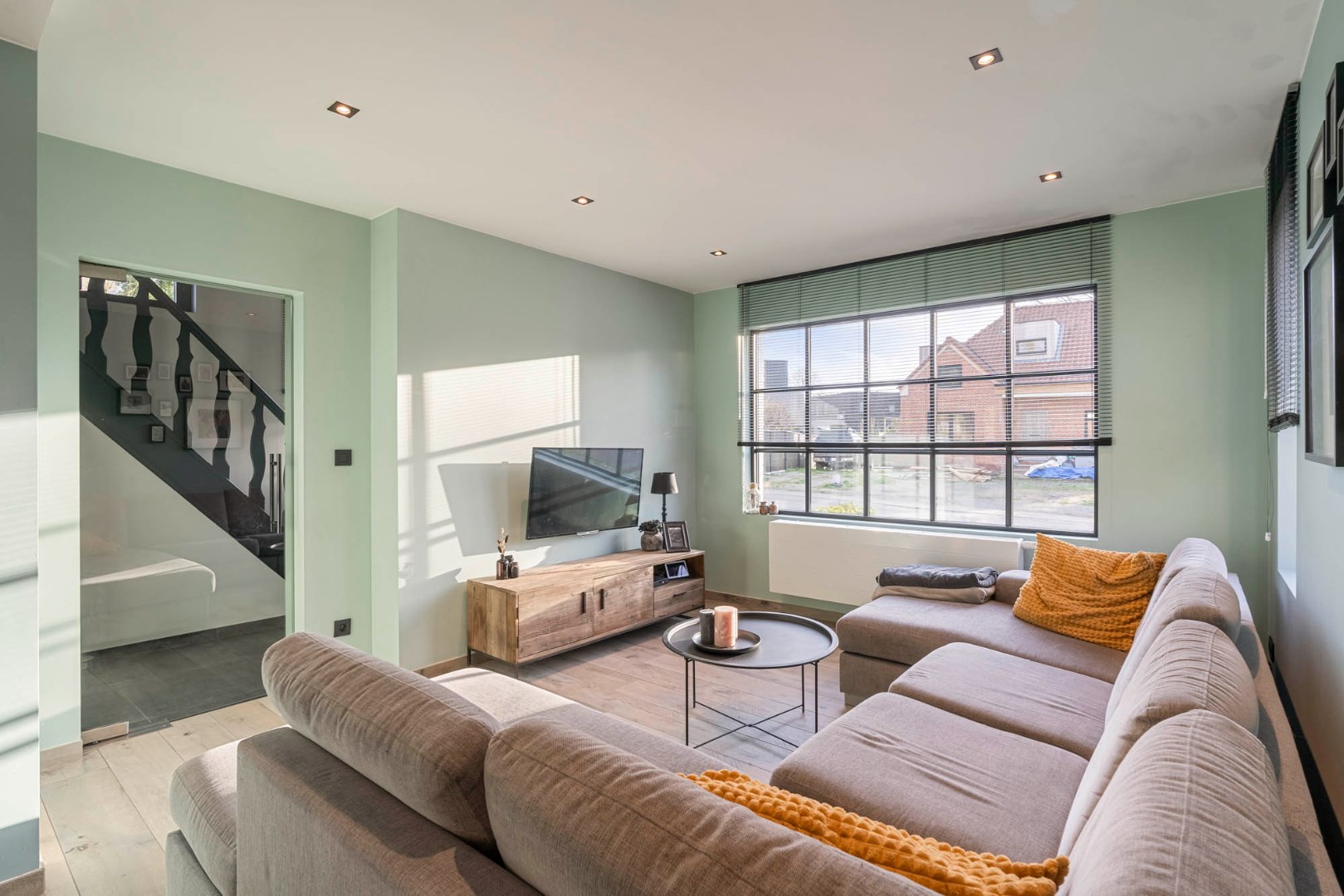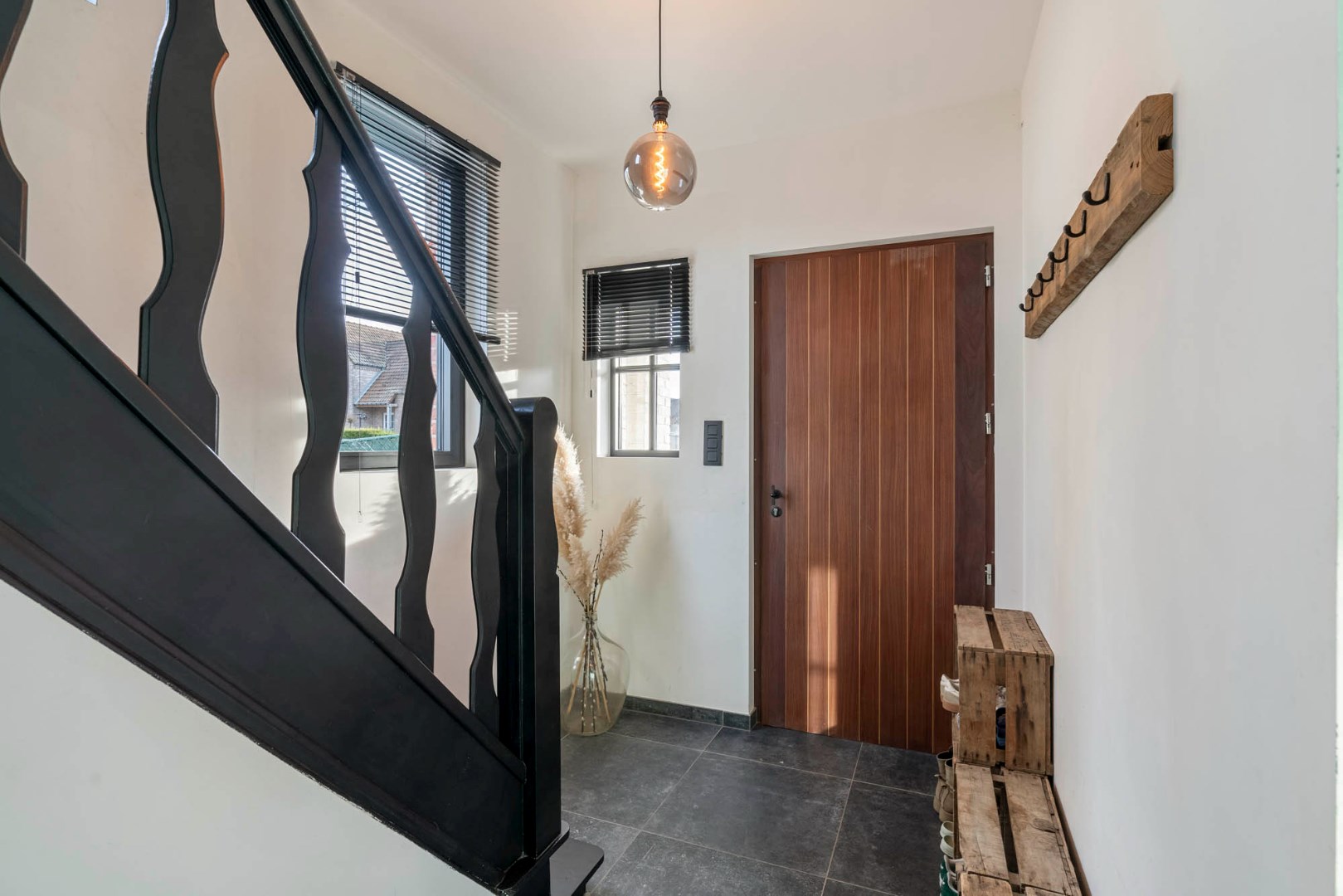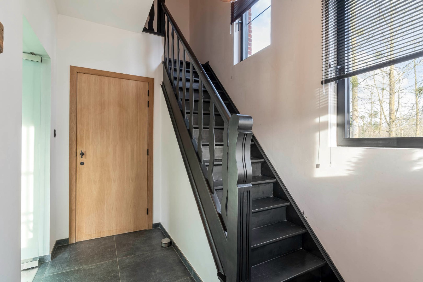 De mooie architectuur van de gevel samen met de zwarte ramen en eiken deur geven deze woning een karaktervolle - stijlvolle uitstraling. Mits opfrissing van het schilderwerk zal dit mooie eigendom met al zijn charmes weer volledig tot zijn recht komen.