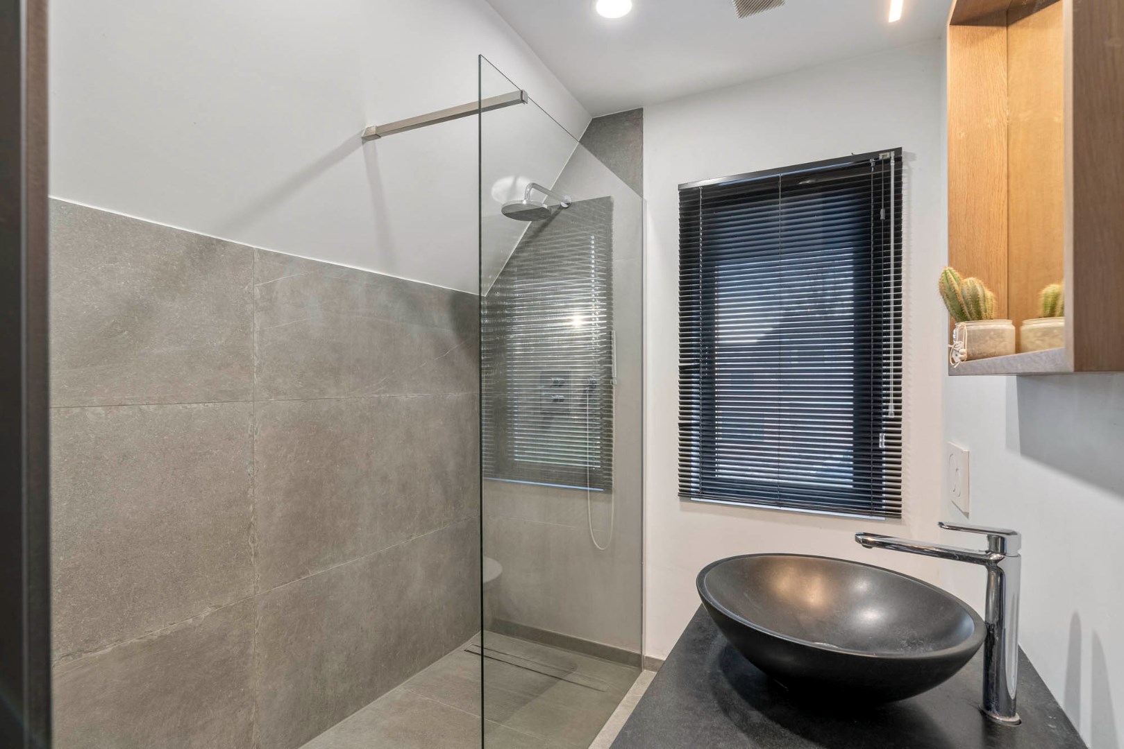 Nachthal, twee zeer ruime slaapkamers, derde kleinere maar nog volwaardige slaapkamer met handige inbouwkasten, netjes afgewerkte badkamer met inloopdouche, lavabo en toilet.